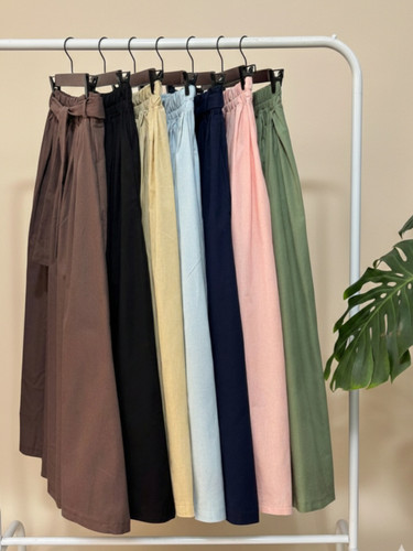 دامن زنانه وارداتی زارا با کمربند از خود پارچه لینن