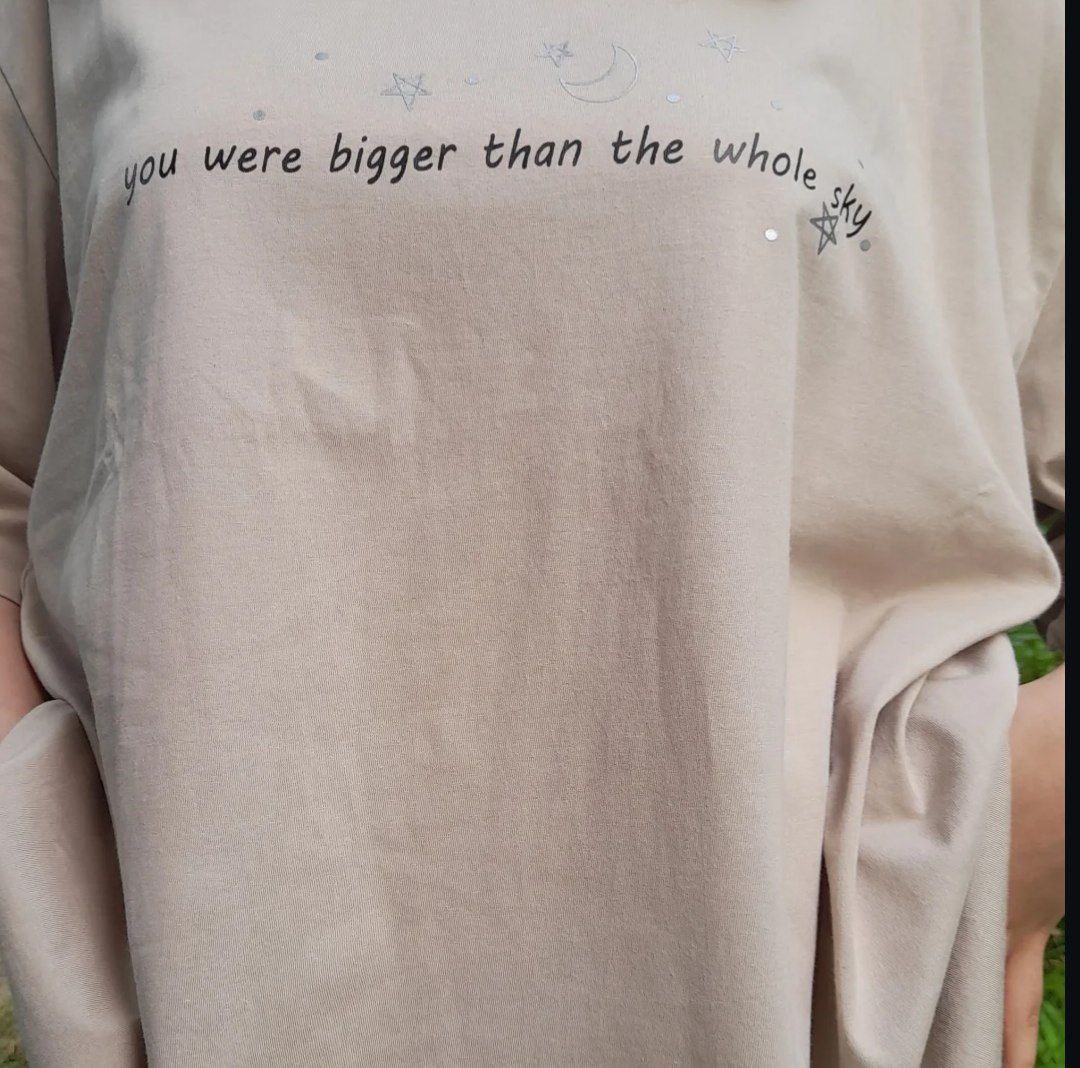 تیشرت باکسی با نوشته وطرح ماه و ستاره زنانه