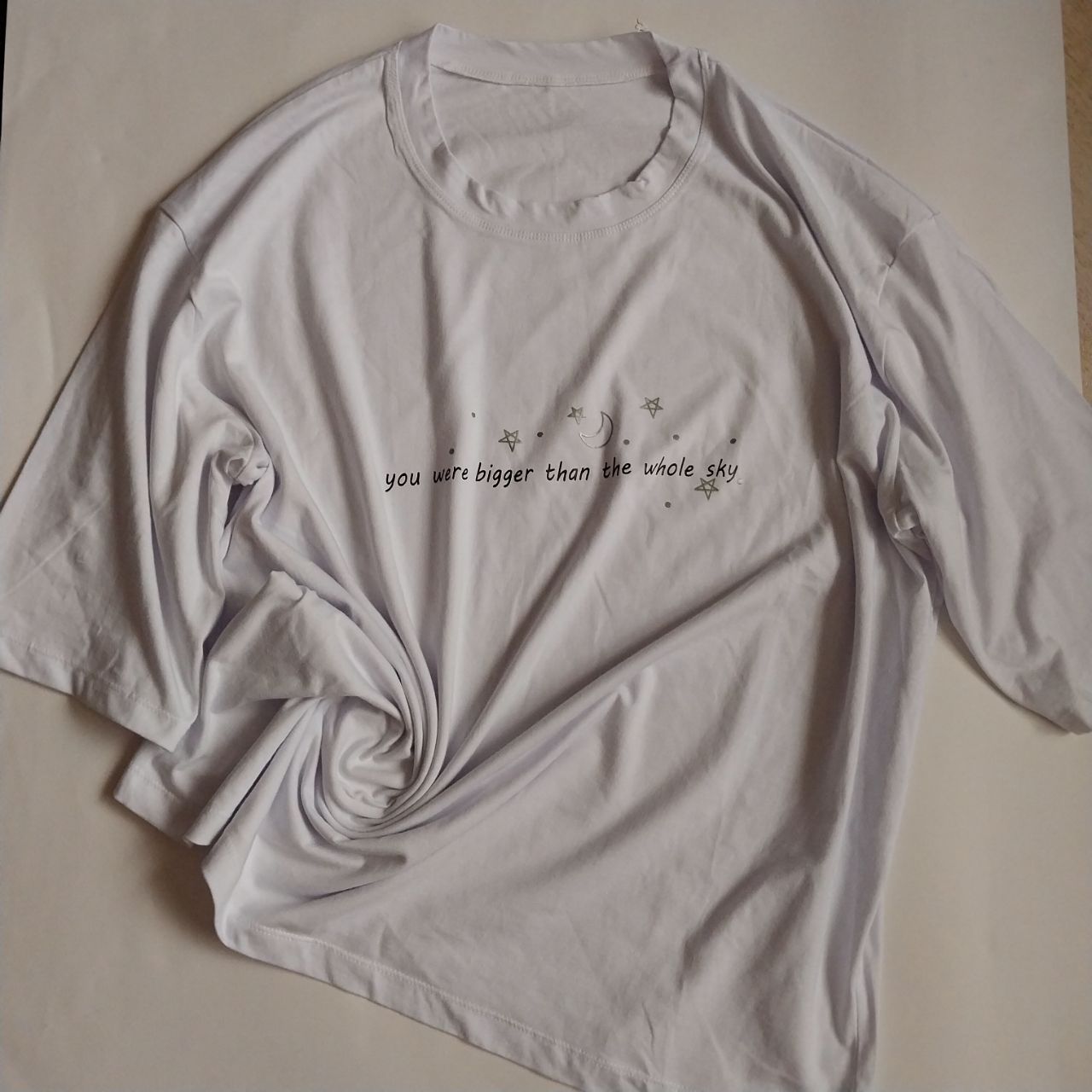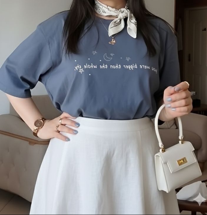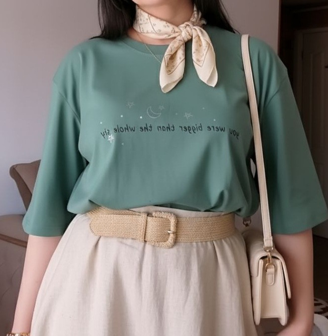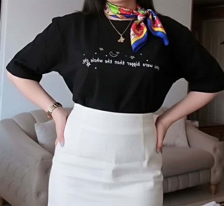 طرح ماه و ستاره جلوهای خاص و فانتزی به تیشرت میدهد و برای دختران و خانمهایی که دنبال استایل ترندی و متفاوت هستند، گزینهای ایدهآل است. این مدل به راحتی با شلوار، لگ یا دامن ست میشود و برای استایل کژوال و راحت مناسب است.