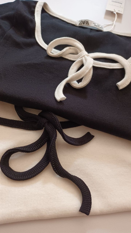 تیشرت کراپ پاپیونی زنانه از برند معتبر ZARA، یکی از خوشگلترین و ترندیترین کراپتیشرتهاست که برای استایلهای روزمره و دورهمیهای دوستانه گزینهای بینظیر محسوب میشود. طراحی یقه خاص و پاپیون جذاب جلوی لباس، استایلی کیوت و چشمگیر ایجاد میکند و ظاهر شما را متفاوت و شیک نشان میدهد.