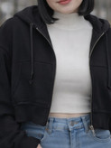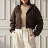 سویشرت کراپ کلاهدار دخترونه داخل کرکی جلوزیپ تنخور جذاب