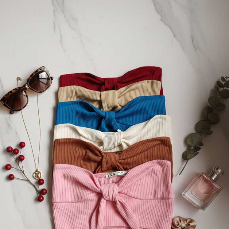 کراپ تاپ بندی دخترانه دورنگ ساده کبریتی نرم